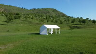 Pronájem zahrnuje postavení a sbalení party stanu.